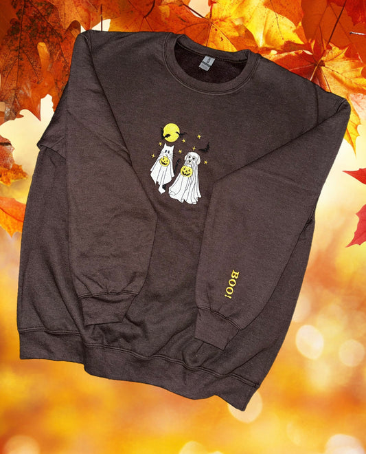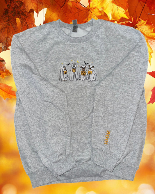 Halloween, Cat, dogs, ghost, fall, Crewneck, embroidery