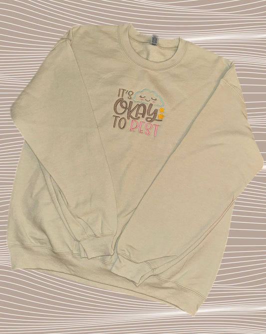 It's okay to rest, crewneck, self-love, embroidery.
